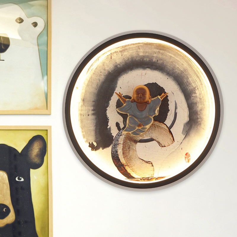 Vivolux | Asiatische Buddha Junge Wandlampe Aluminium Schlafzimmer LED Wandbeleuchtung mit Halo-Ring in Schwarz