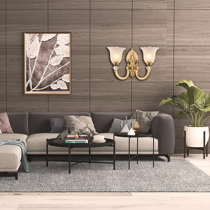 Vivolux | Bell Frosted Glass Wandlamp Fixture Vintage Stil 1/2-Head Bedside Wandlicht met Gouden Achterplaat