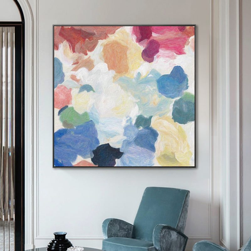 Vivolux | Blaues Handdruckgemälde Texturiertes Abstrakte Expressionismus Esszimmer Leinwand Wanddekoration