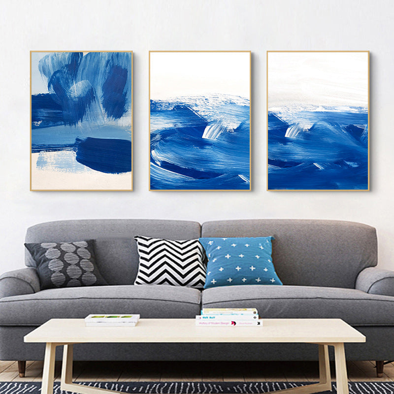 Vivolux | Blaue zeitgenössische Malerei Pinselstrich Wandkunst Dekor für die Küche, mehrere Größen