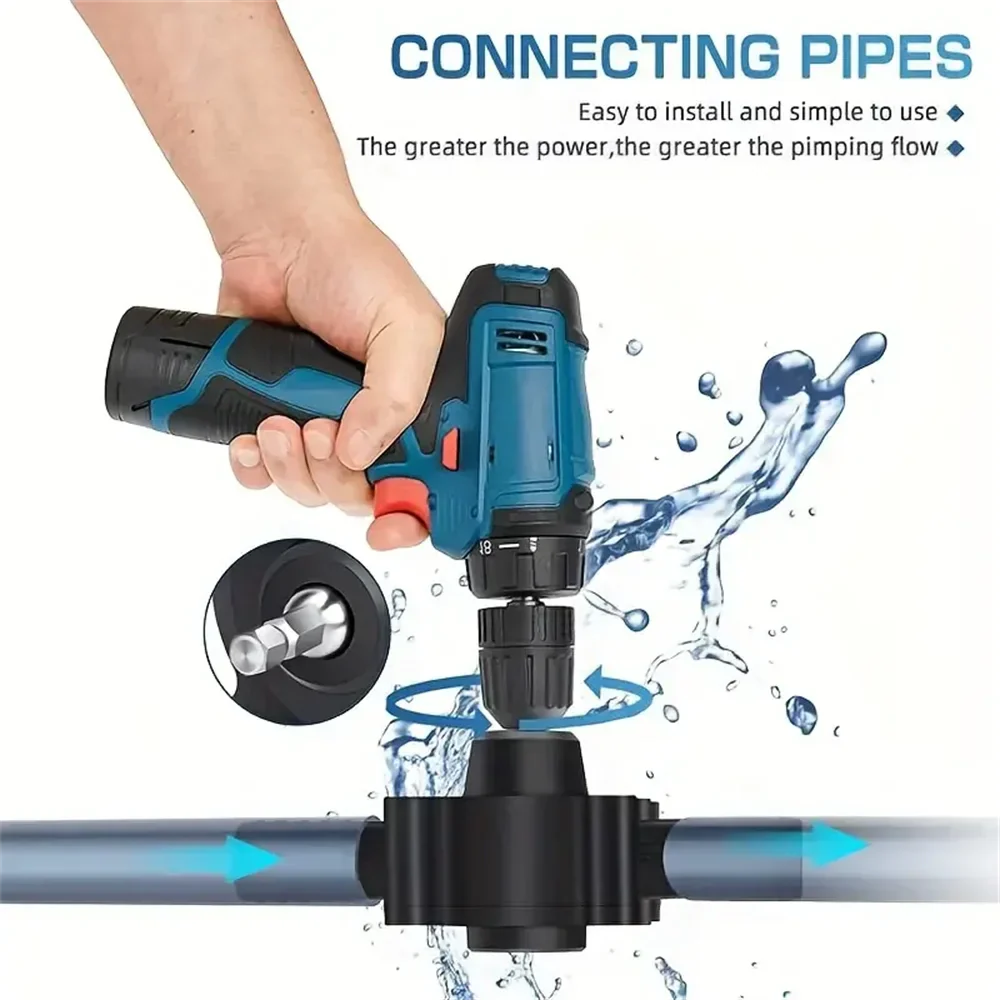 Kein schweres Heben oder manuelles Bewegen von Wasser mehr. Die Bohrwasserpumpe verwandelt Ihre gewöhnliche Bohrmaschine in eine leistungsstarke Pumpe und überträgt mühelos Flüssigkeiten wie Wasser, Öl und mehr. Perfekt für Heim-, Garten- und Außenprojekte.
