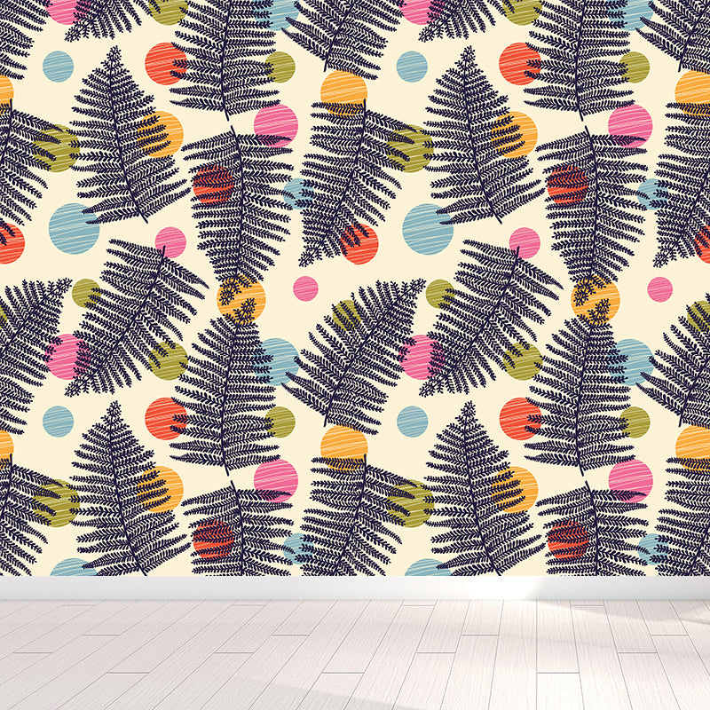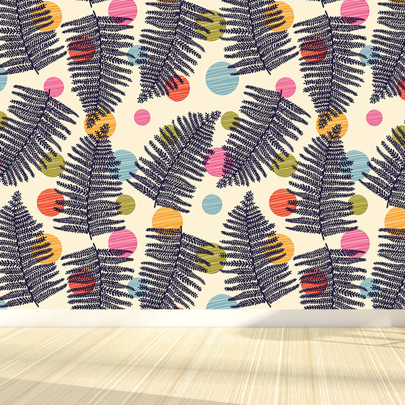 Vivolux | Botanischer Blattdruck Tapete Wandmalerei Zeitgenössische Vlies Wandkunst in dunkler Farbe