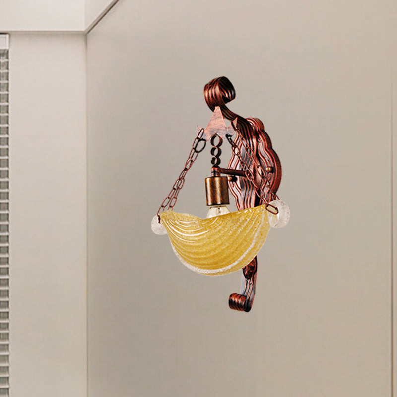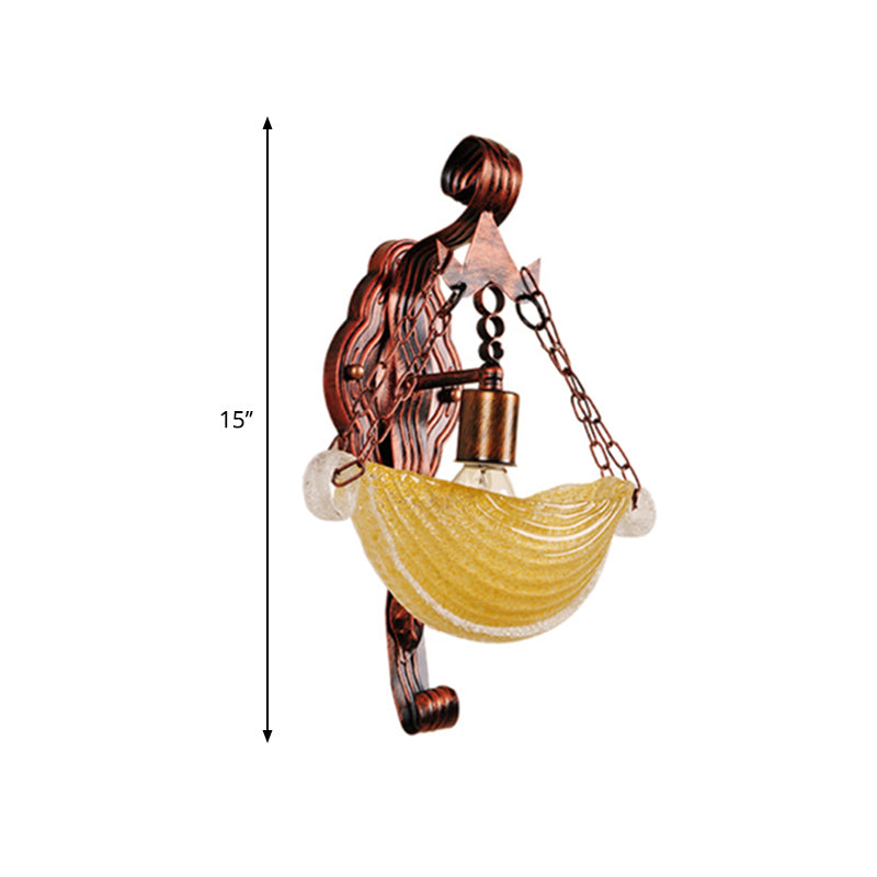 Vivolux | Bowl-förmige Wandleuchte Vintage Stilvolles Bernstein-Glas 1 Licht Wetterkupfer Wandlampe Leuchte für Schlafzimmer