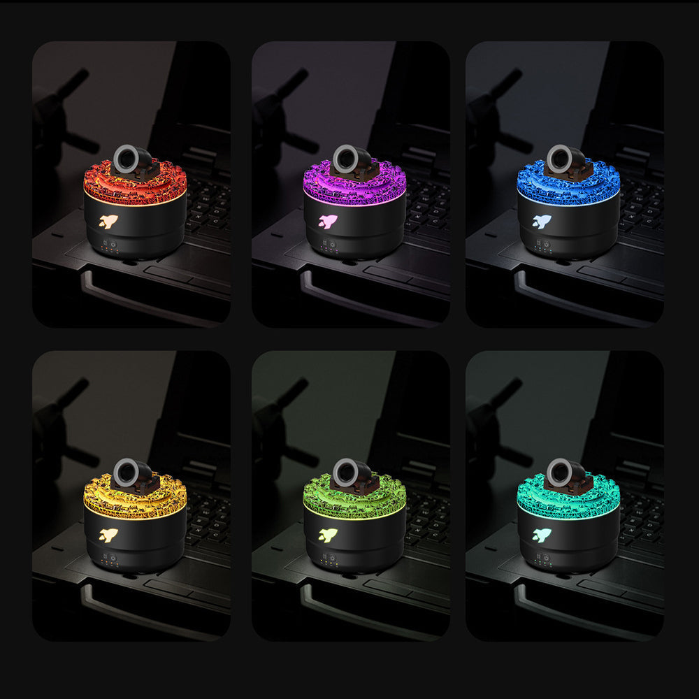 Der Aroma Cannon Luftbefeuchter mit Nachtlicht vereint auffällige Gestaltung mit modernen Funktionen. Mit einem kompakten, zylindrischen Aufbau, der mit einem echten, lebhaften Lava-Ring verziert ist, der in verschiedenen Farben leuchtet, wenn er in Betrieb ist, bringt er Wärme und Faszination in jeden Raum.