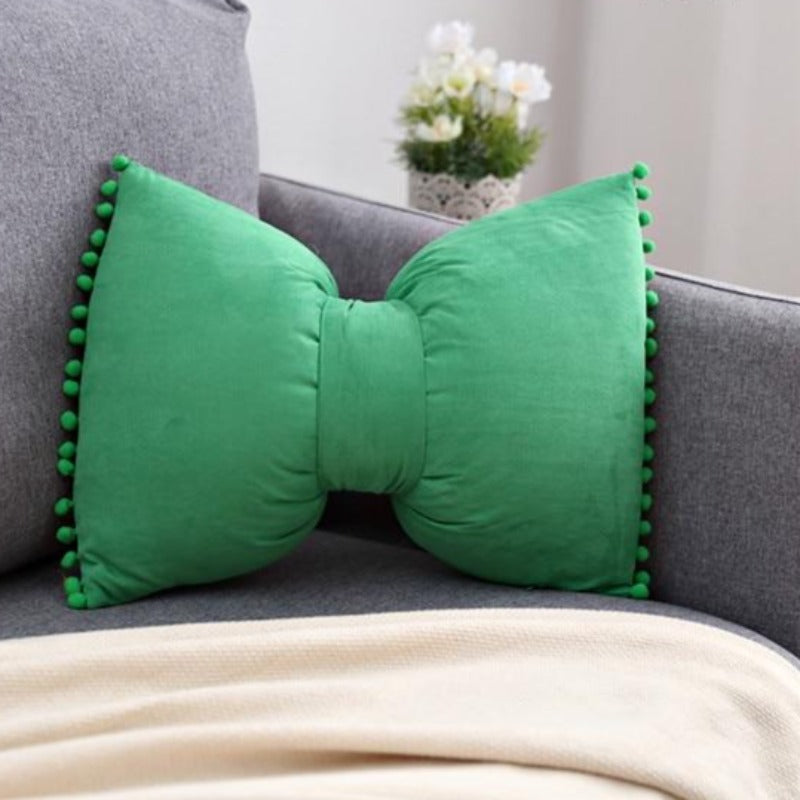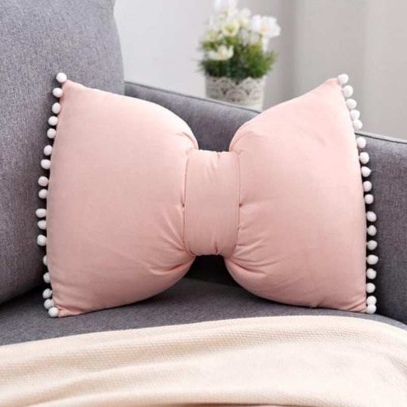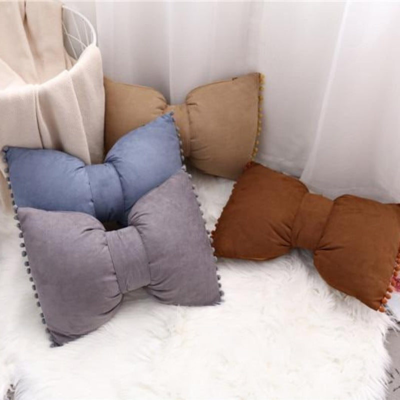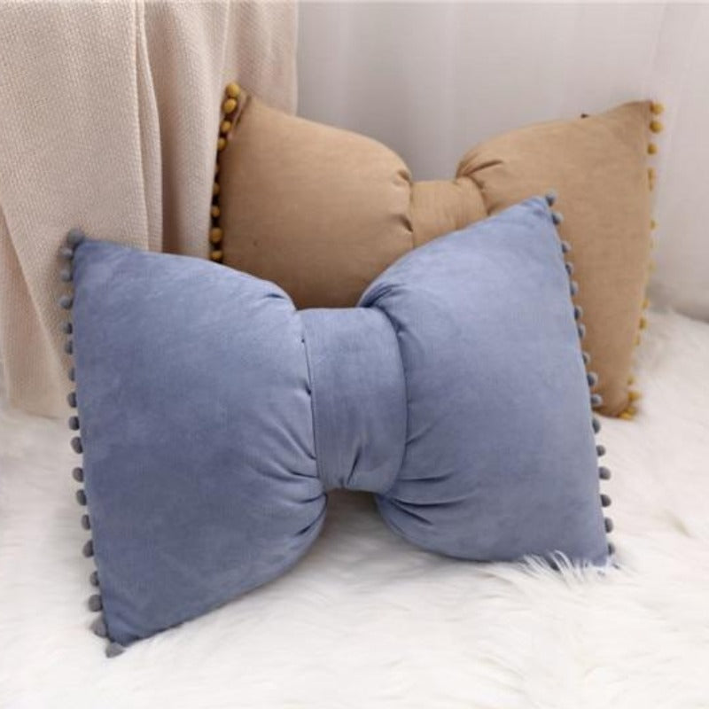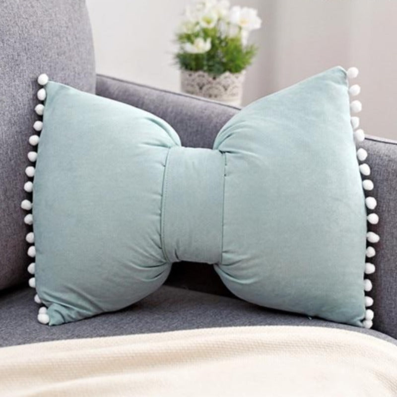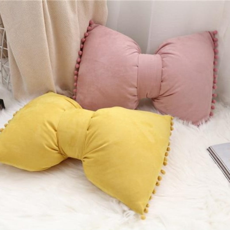 Bereichern Sie Ihr Zuhause mit einem charmanten Schleifenakzent, der sowohl verspielt als auch schick ist – eine ideale Ergänzung für die Gestaltung von Kinder- und Jugendzimmern. Unser Finishing Touch Bow Kissen ist in einer Vielzahl lebendiger Farben erhältlich, die nahtlos in jedes Farbkonzept integriert werden können. Es verfügt über liebevoll handgefertigte Pom-Pom-Fransen, die einen spielerischen Charme hinzufügen. Ein abnehmbarer Mittelriemen ermöglicht es, das fröhliche Schleifen-Kissen in ein praktisches Lendenkissen zu verwandeln, wodurch es zu einem vielseitigen Möbelstück wird, das mit Ihrem Kind mitwachsen kann. Der extrem weiche, kunstlederähnliche Stoff lädt zum Kuscheln ein, während die feinen Details es zur perfekten zierlichen Ergänzung für eine feminine Boho-Dekoration machen. Die verspielte Form macht es besonders ansprechend für heranwachsende Kinder mit einem ausgeprägten Stilbewusstsein.