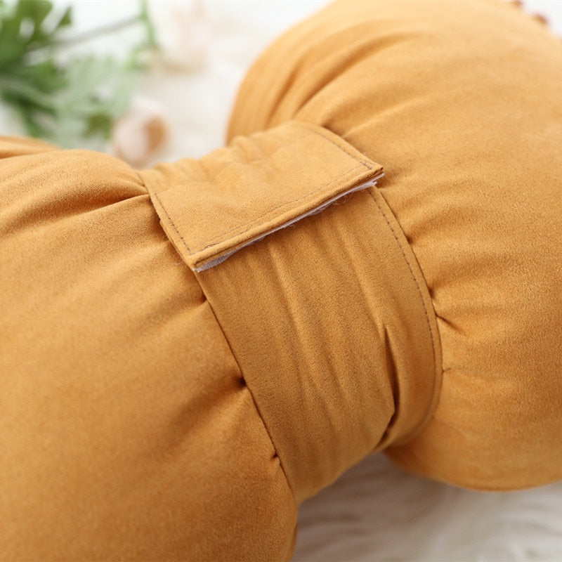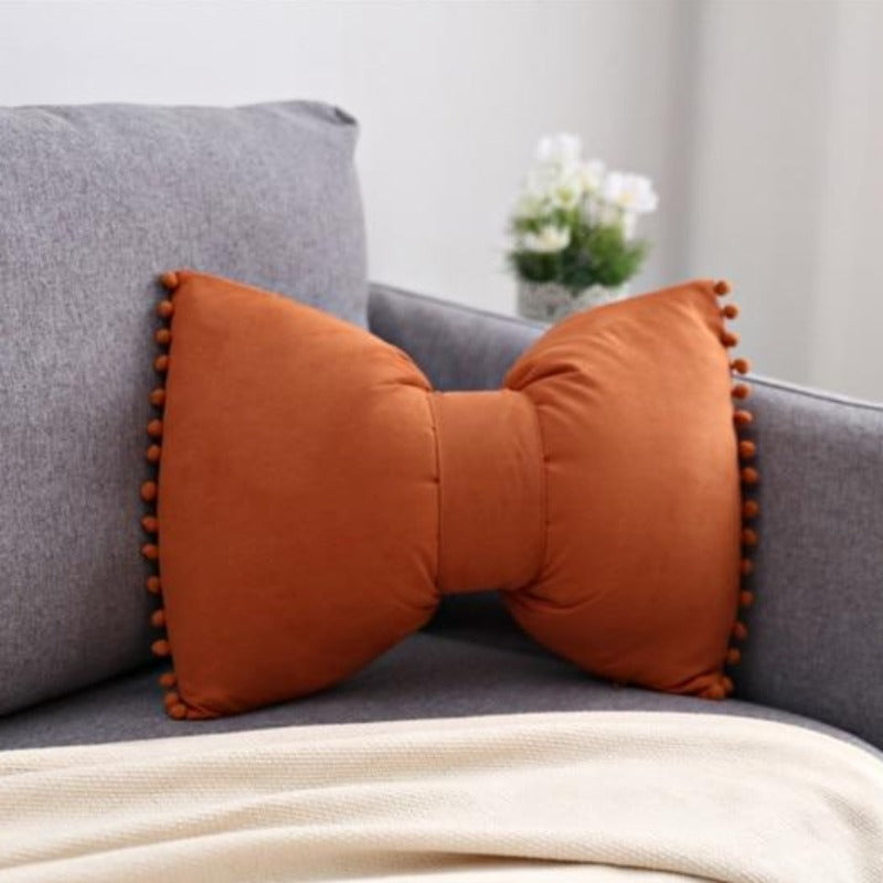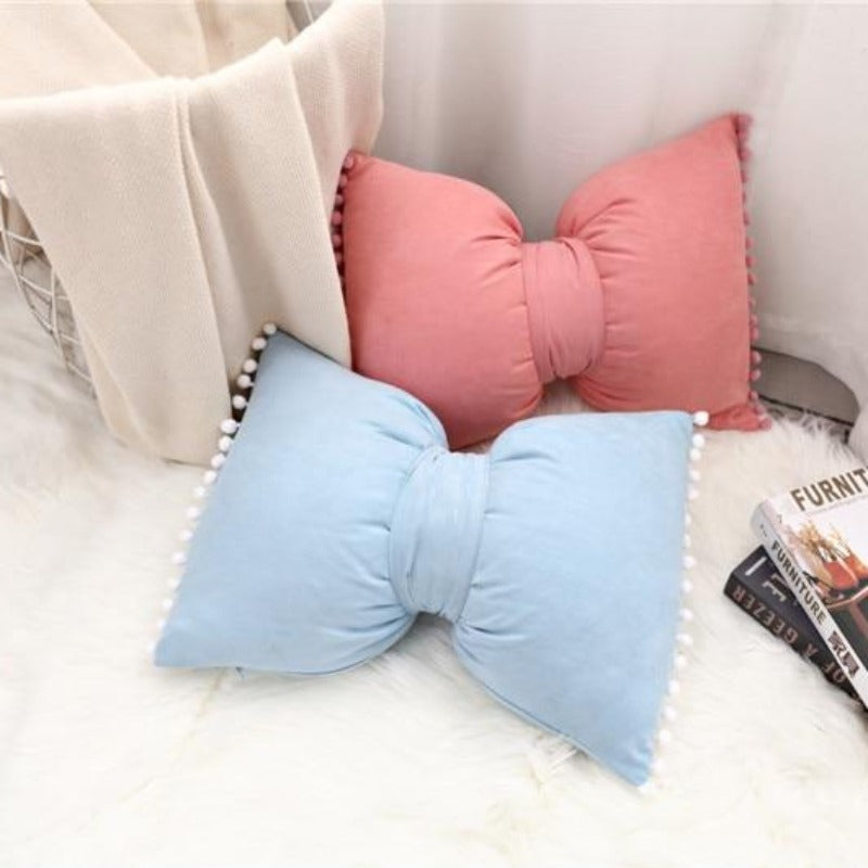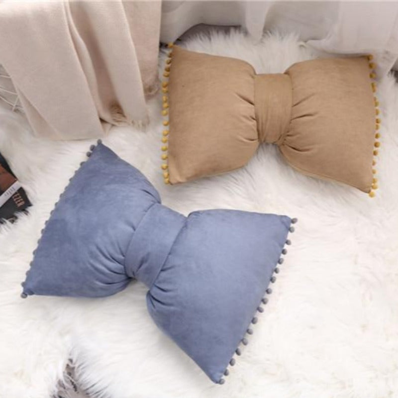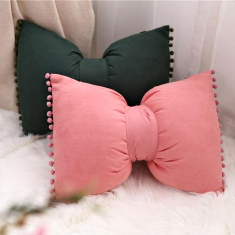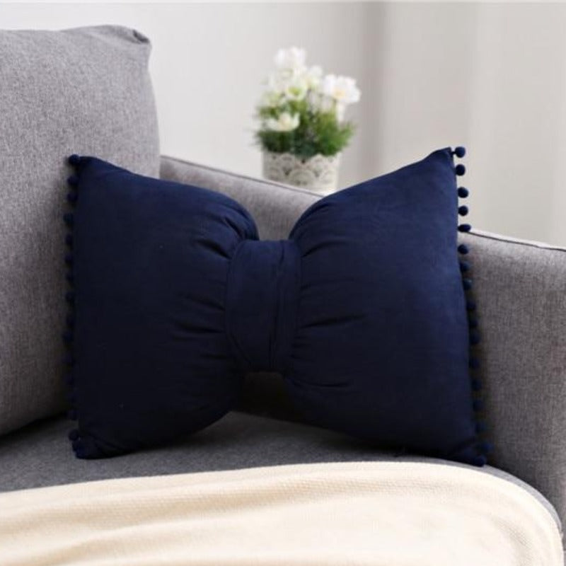 Bereichern Sie Ihr Zuhause mit einem charmanten Schleifenakzent, der sowohl verspielt als auch schick ist – eine ideale Ergänzung für die Gestaltung von Kinder- und Jugendzimmern. Unser Finishing Touch Bow Kissen ist in einer Vielzahl lebendiger Farben erhältlich, die nahtlos in jedes Farbkonzept integriert werden können. Es verfügt über liebevoll handgefertigte Pom-Pom-Fransen, die einen spielerischen Charme hinzufügen. Ein abnehmbarer Mittelriemen ermöglicht es, das fröhliche Schleifen-Kissen in ein praktisches Lendenkissen zu verwandeln, wodurch es zu einem vielseitigen Möbelstück wird, das mit Ihrem Kind mitwachsen kann. Der extrem weiche, kunstlederähnliche Stoff lädt zum Kuscheln ein, während die feinen Details es zur perfekten zierlichen Ergänzung für eine feminine Boho-Dekoration machen. Die verspielte Form macht es besonders ansprechend für heranwachsende Kinder mit einem ausgeprägten Stilbewusstsein.