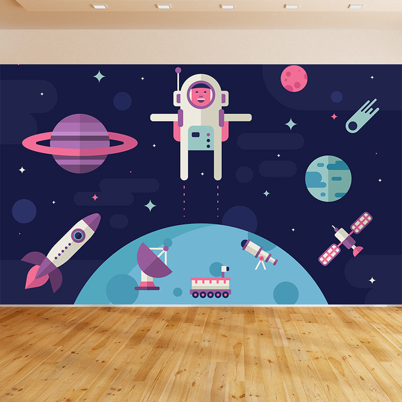 Vivolux | Donkere kleur ruimteschip behang universum kinderen vochtbestendig wandbedekking