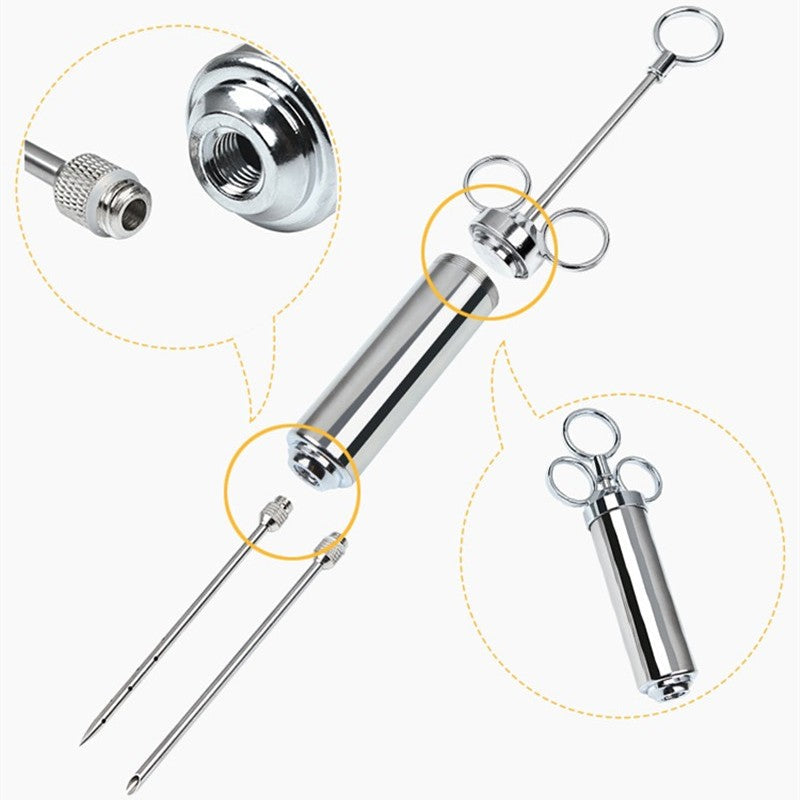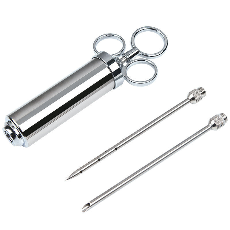 Die besten Werkzeuge, um Ihrem nächsten Gericht zusätzlichen Geschmack und Feuchtigkeit zu verleihen.Ein Marinadeninjektor ermöglicht es Ihnen, eine sehr präzise Menge Marinade auf einmal zu injizieren.Die Marinade ist besonders gut für das Kochen bei hoher Hitze, wie auf dem Grill, um sicherzustellen, dass das fertige Produkt viel Feuchtigkeit behält.Es fügt Tiefe des Geschmacks hinzu und zartet das Fleisch.Marinadeninjektoren gibt es in verschiedenen Größen mit dicken und dünnen Nadeln.Es ist auch einfach, dieses praktische Küchengadget zu reinigen.Es wird nicht fleckig, rostet nicht und behält keine Aromen - großartig für diejenigen, die nicht genug Knoblauch bekommen können oder mit vielen verschiedenen Gewürzen experimentieren möchten!Der Griff des Injektors gibt Ihnen ein besseres Gefühl von Kontrolle.Abmessungen:
