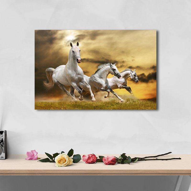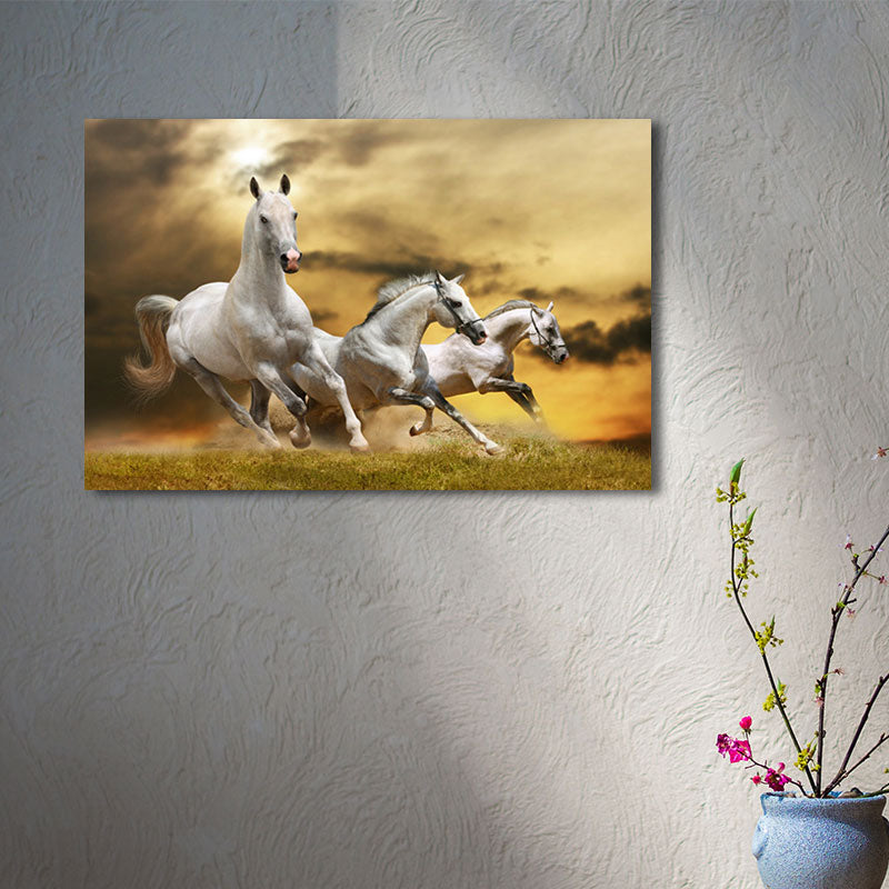 Vivolux | Feine Pferde Wandkunst Texturierte Zeitgenössische Wohnzimmer Leinwanddruck in Dunkler Farbe