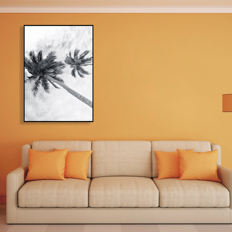 Vivolux | Fotografie Moderne Leinwandkunst mit Kokospalmen und Himmelansicht in Schwarz für den Flur