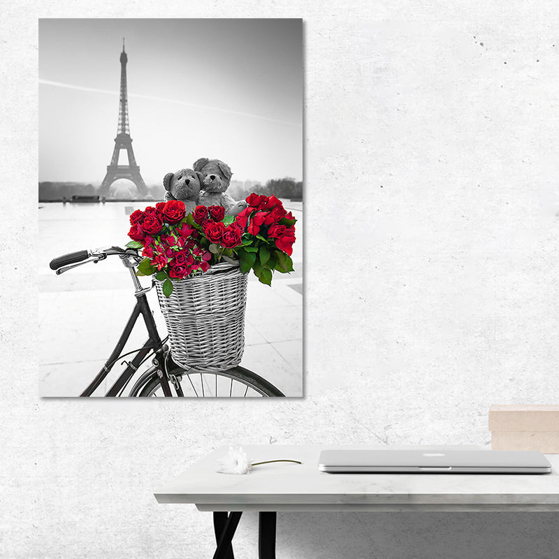 Vivolux | Fotodruck Eiffelturm Leinwand Kunst Moderne Neuheit Wahrzeichen Wanddekoration in Rot-Grau