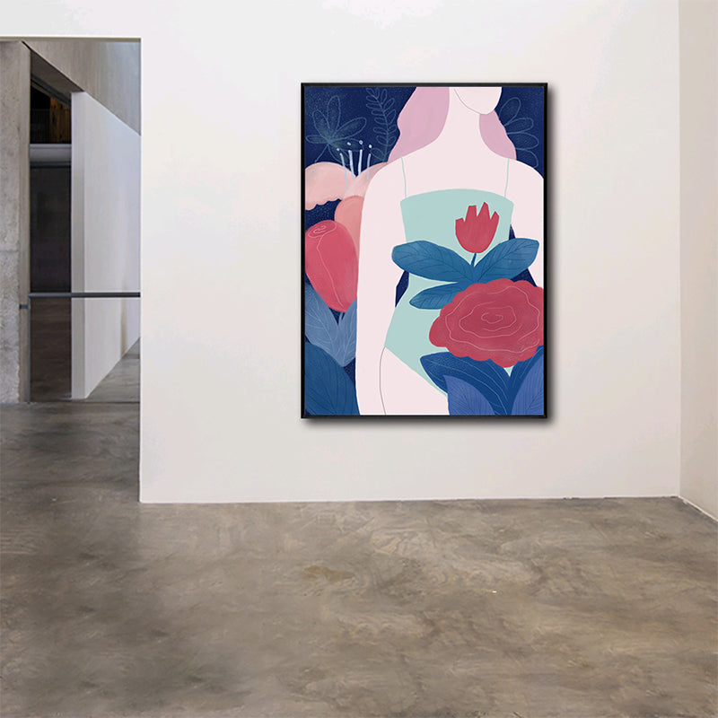 Vivolux | Frau in den Blumen Leinwanddruck Flur Figur Wandkunst Dekor in Rot, Texturiert