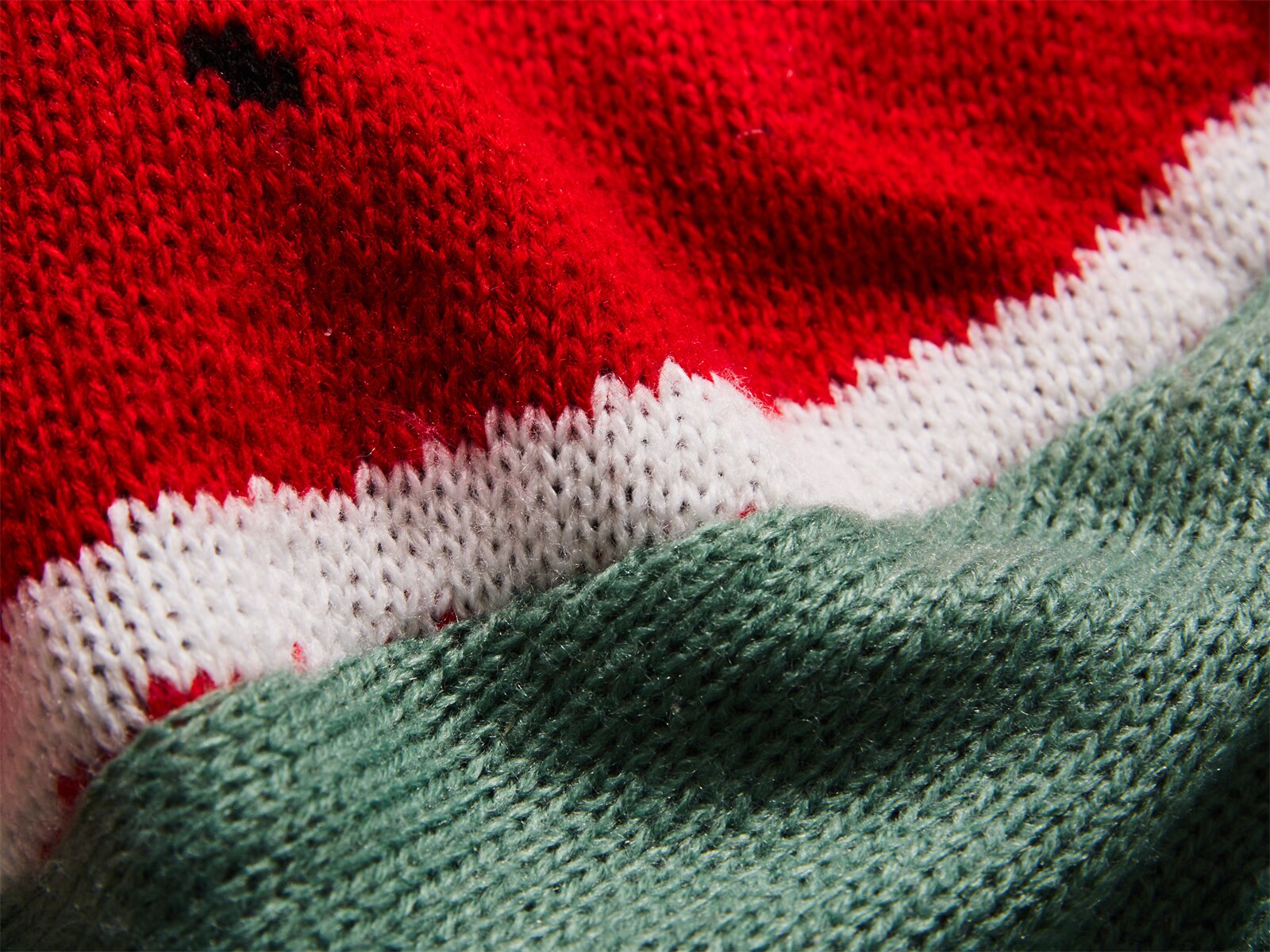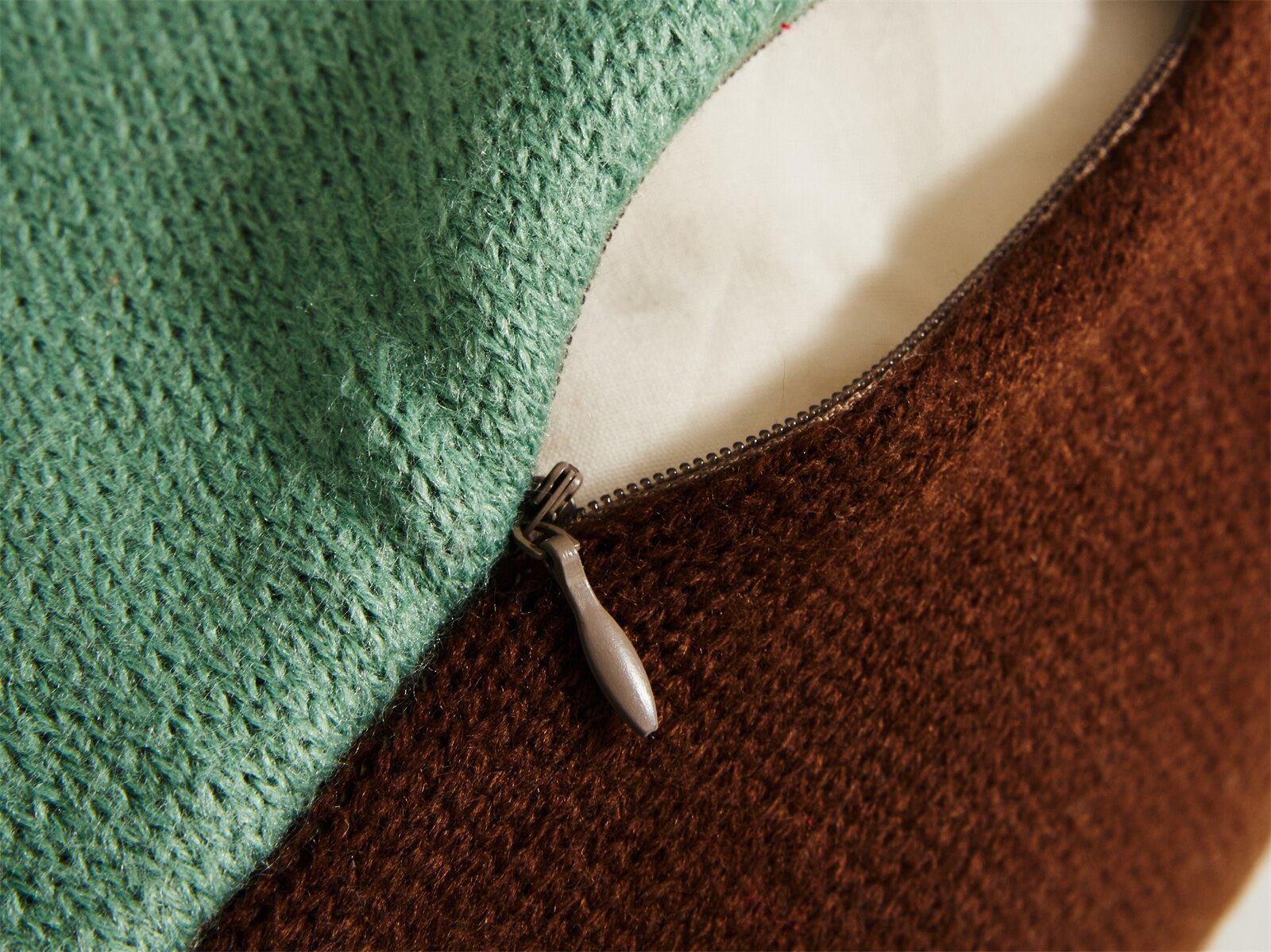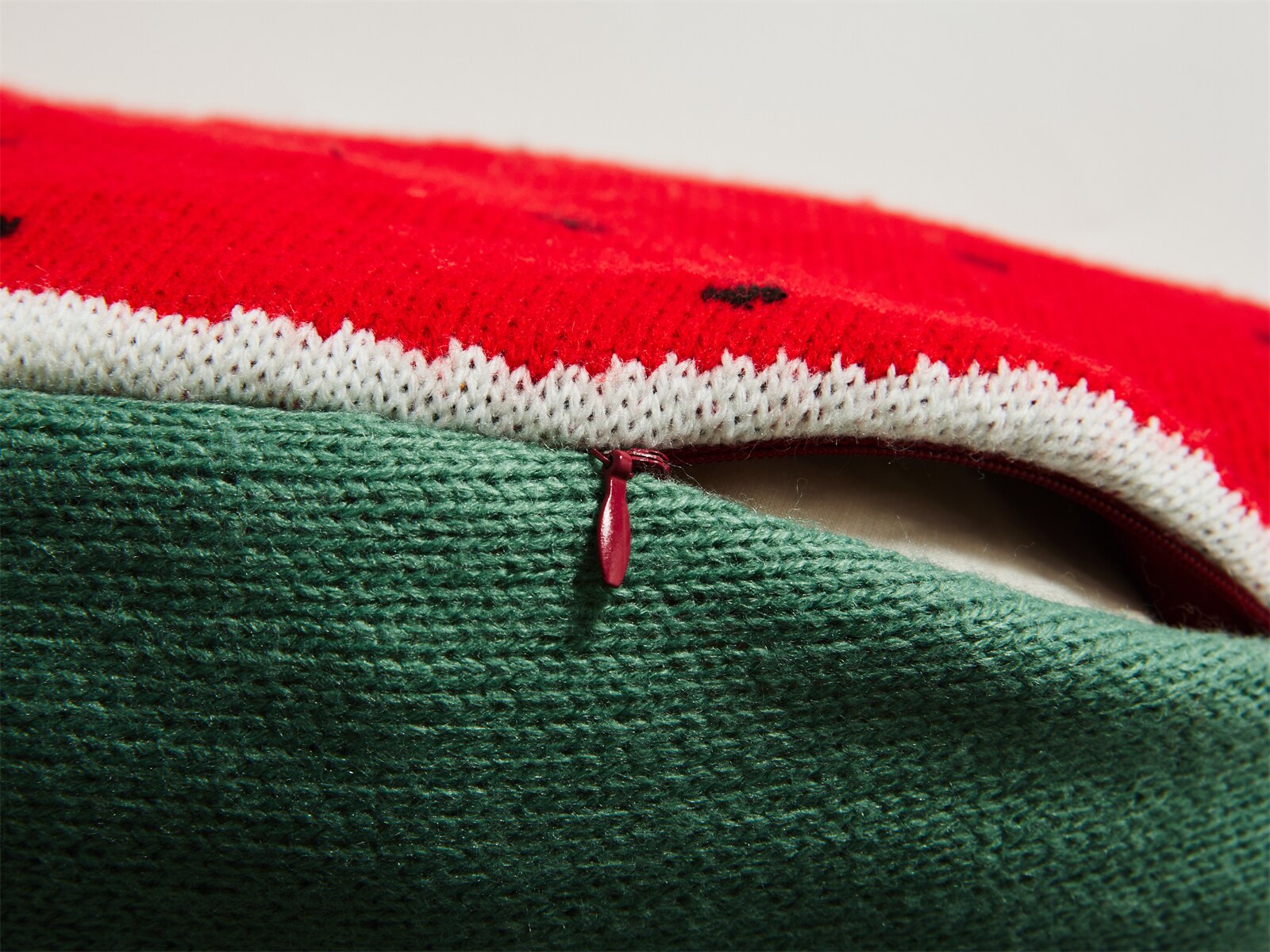 Genießen Sie die Gemütlichkeit mit einem gestrickten Kissen, das mit Früchten verziert ist!