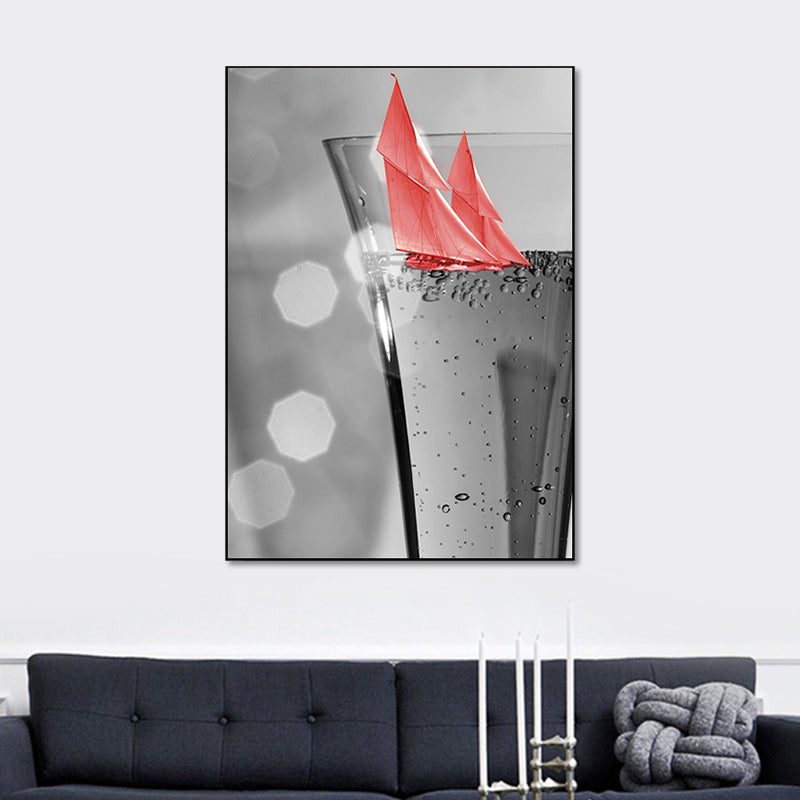 Vivolux | Gemischte Medien Weinglas Kunstdruck für das Esszimmer, Rot und Grau, Texturierte Oberfläche