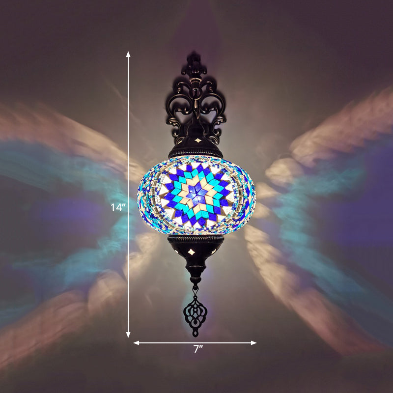 Vivolux | Globe Innenwandlampe Vintage Buntglas 1 Licht Weiß/Rot/Orange Wandleuchte Beleuchtung