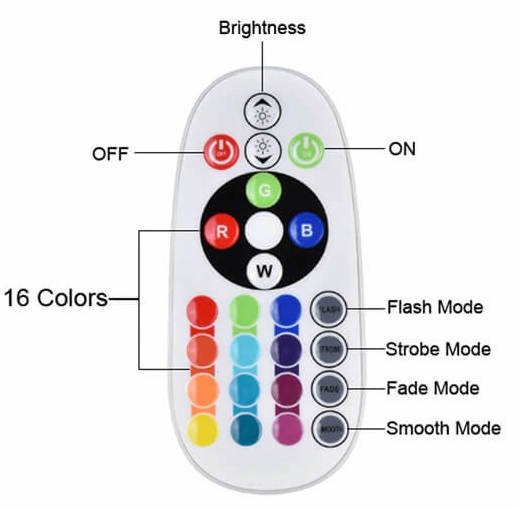- Im Paket enthalten:Fernbedienung mit 16 Farben und 4 Lichtstilen.