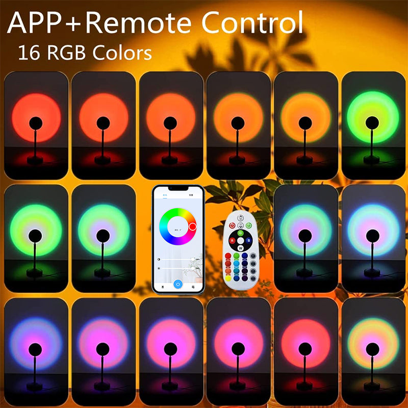 Hochwertige USB-Sunset Lampe Fernbedienung mit 16 Farben und 4 Lichtmodi Energiesparende LED-Beleuchtung Verstellbarer Kopf für maximale Flexibilität