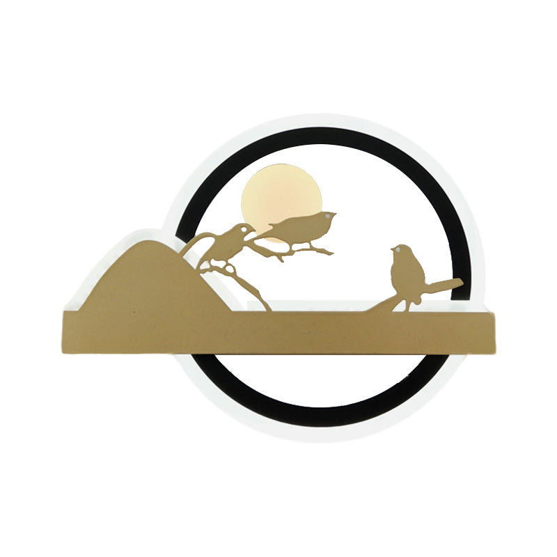 Vivolux | Gold Runde Wandmontierte Leuchten Orientalischer Stil LED Acryl Wandmural Licht mit Vogelmuster