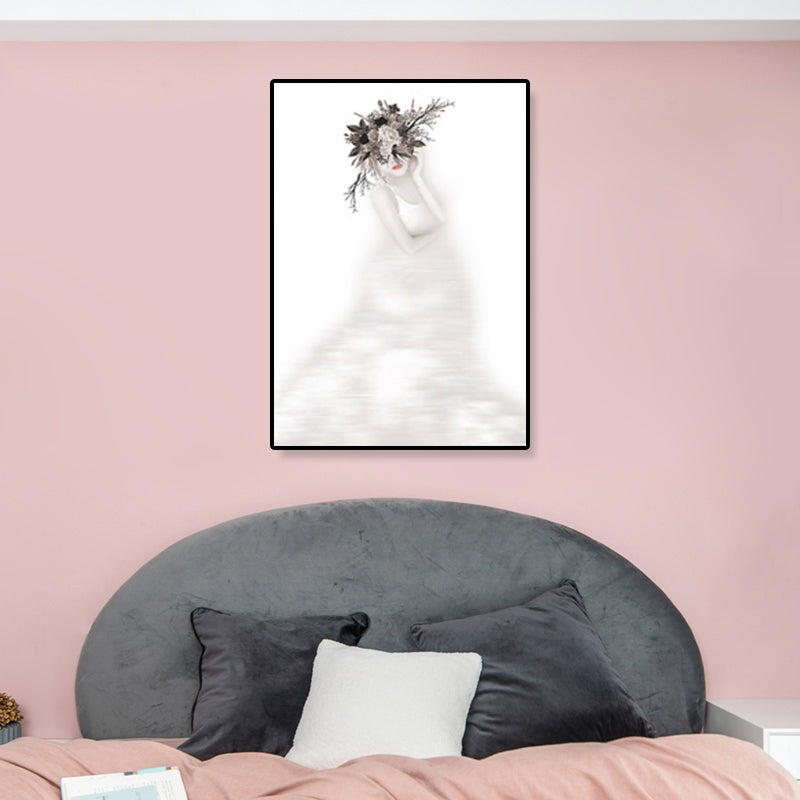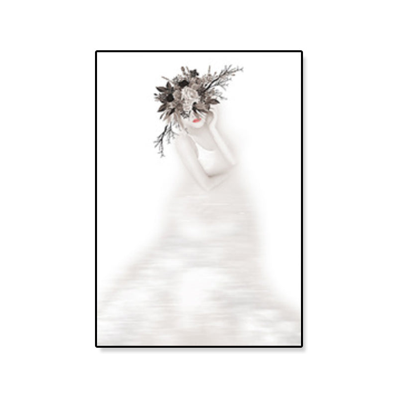 Vivolux | Graues Figurenporträt Wandkunst Mädchen mit Kranz Minimalistischer Texturierter Leinendruck für das Schlafzimmer