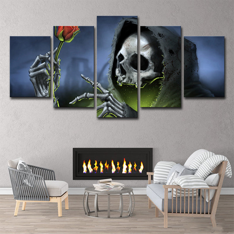 Vivolux | Grim Reaper mit Rose Kunstdruck Modern Stil Mehrteilige Wanddekoration in Blau für Zimmer