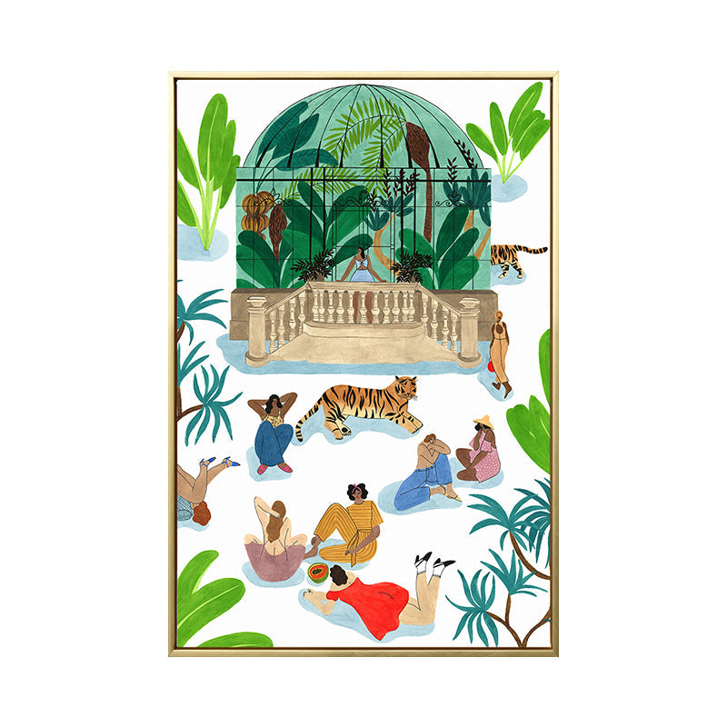 Vivolux | Grüne Figuren und Tiger Gemälde Texturiert Nordic Stil Esszimmer Wanddekoration