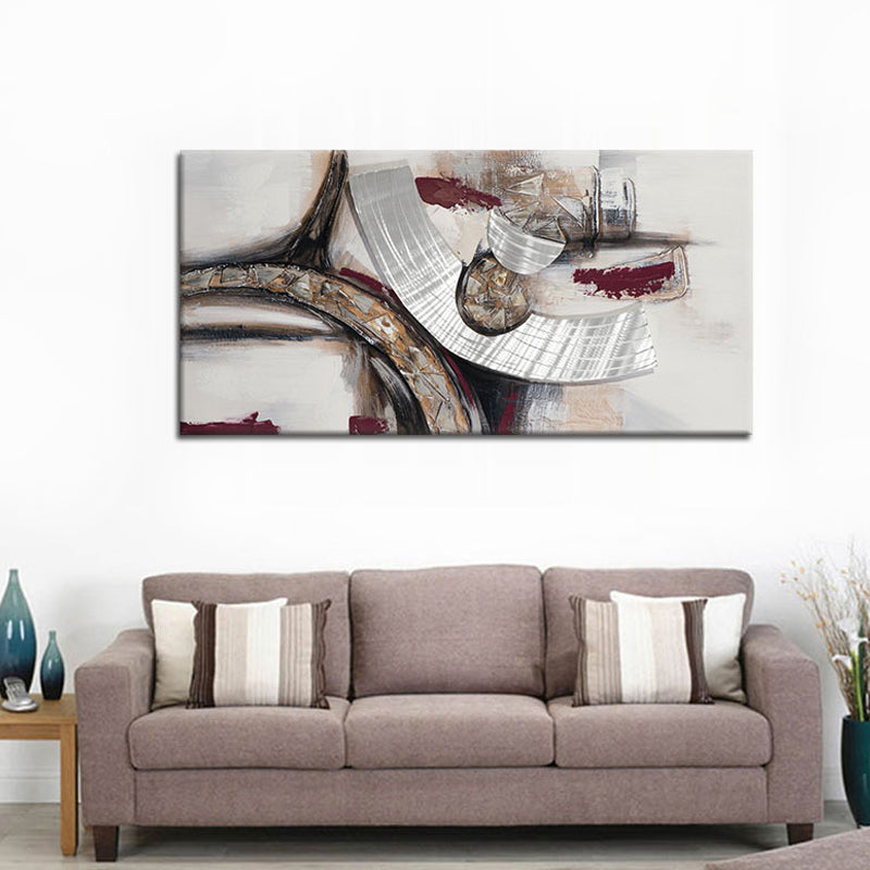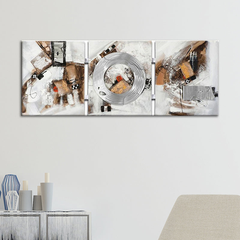 Vivolux | Handdruck abstrakte Leinwand Wandkunst zeitgenössisches strukturiertes Gemälde in Braun für Zuhause