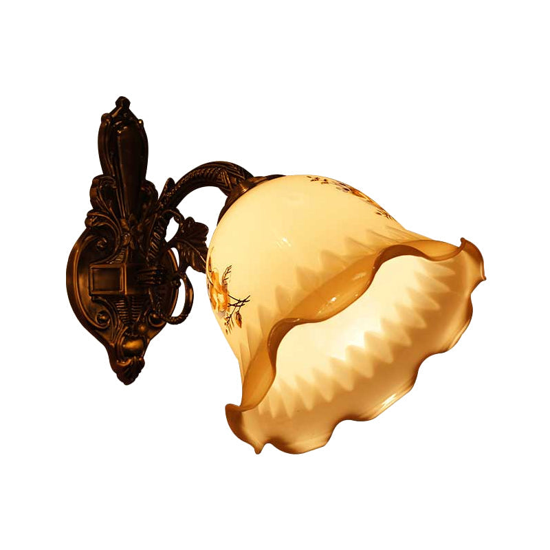Vivolux | Handgeblazen Opalglas klok sconce Koreaanse bloem 1 hoofd bedside wandlamp met rimpelrand in brons