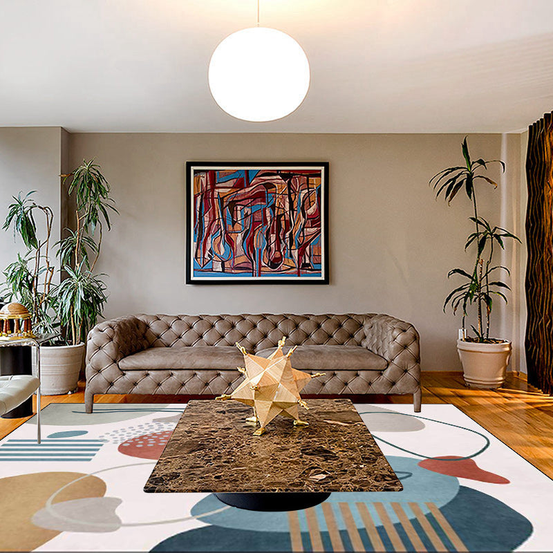 Vivolux | Zeitgenössischer Neuheiten Teppich in Ivory Farbblock Streifenmuster Teppich Polyester Rutschfest Waschbarer Teppich für die Wohnkultur