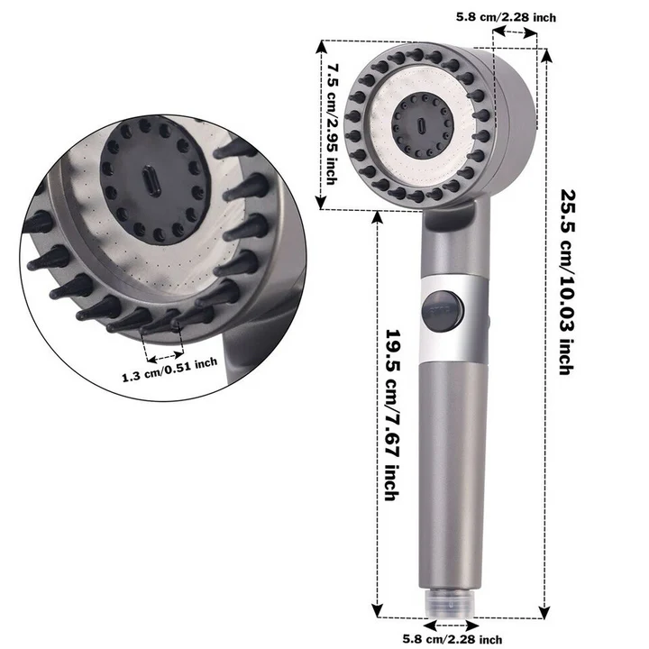 Erleben Sie den ultimativen Duschkomfort mit dem leistungsstarken Hochdruck-Massageduschkopf. Dieser 3-in-1 Duschkopf verwandelt Ihren täglichen Duschmoment in einen revitalisierenden Rückzugsort. Genießen Sie die optimale Mischung aus Hochdruck-Wasserfluss, fortschrittlicher Filtration und therapeutischen Massagefunktionen – alles, um Ihr Badezimmer in eine persönliche Wohlfühloase zu verwandeln.