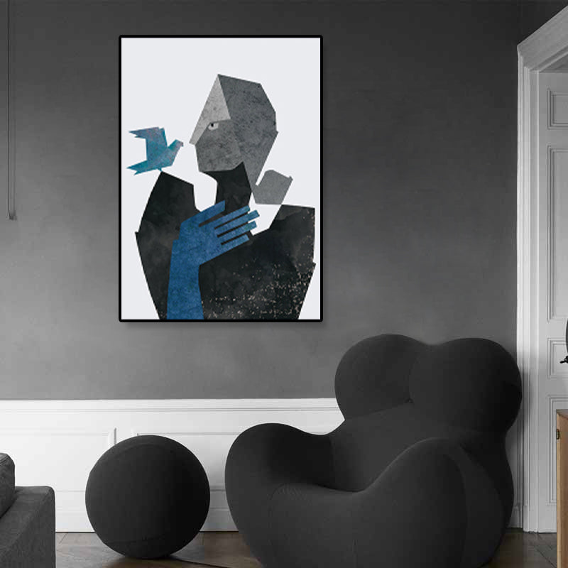 Vivolux | Illustration Figur Porträt Leinwanddruck Dunkle Farbe Kubismus Wandkunst für Hausinterieur