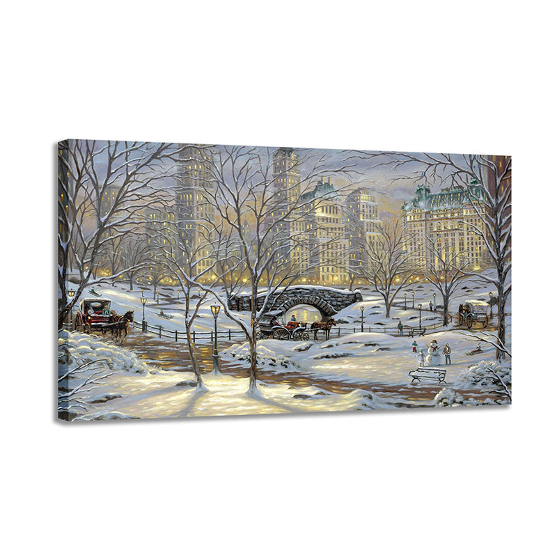 Vivolux | Impressionismus Schnee Stadtlandschaft Leinwand Gelbes Texturiertes Gemälde für Esszimmer