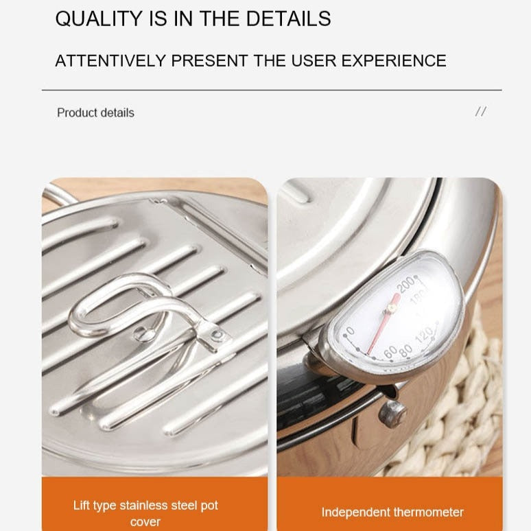 Temperaturüberwachung: Dieses Frittieröl wird mit einem separaten Thermometer geliefert. Die Temperatur kann während des Kochens jederzeit überprüft werden, um die Speisen schmackhafter zu gestalten.