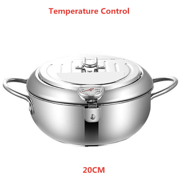 Das Design des japanischen Tempura-Frittierdecks sorgt für Sicherheit. Um das Herausplatschen von Öl zu vermeiden, können Sie die frittierten Speisen zunächst auf den Deckel der Pfanne legen und abwarten, bis das Öl wieder in die Pfanne fließt, damit es erneut verwendet werden kann. Der Schnabelabfluss ermöglicht ein einfaches Ausgießen des Kochöls.