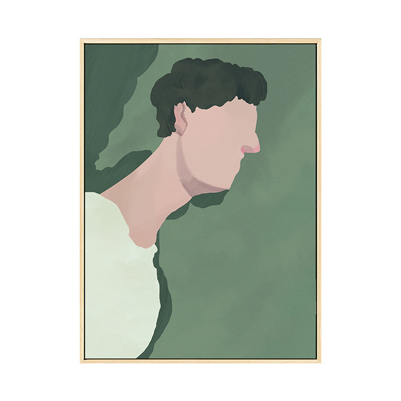 Vivolux | Jungenfigur Zeichnung Wandkunst Dekor Funky Texturierte Leinwanddruck in Grün für das Schlafzimmer