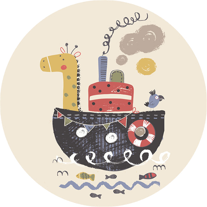 Vivolux | Kinder-Schiff-Muster-Teppich Beige und Orange Polyester Teppich Waschbar Haustierfreundlicher Rutschfester Teppich für das Kinderzimmer