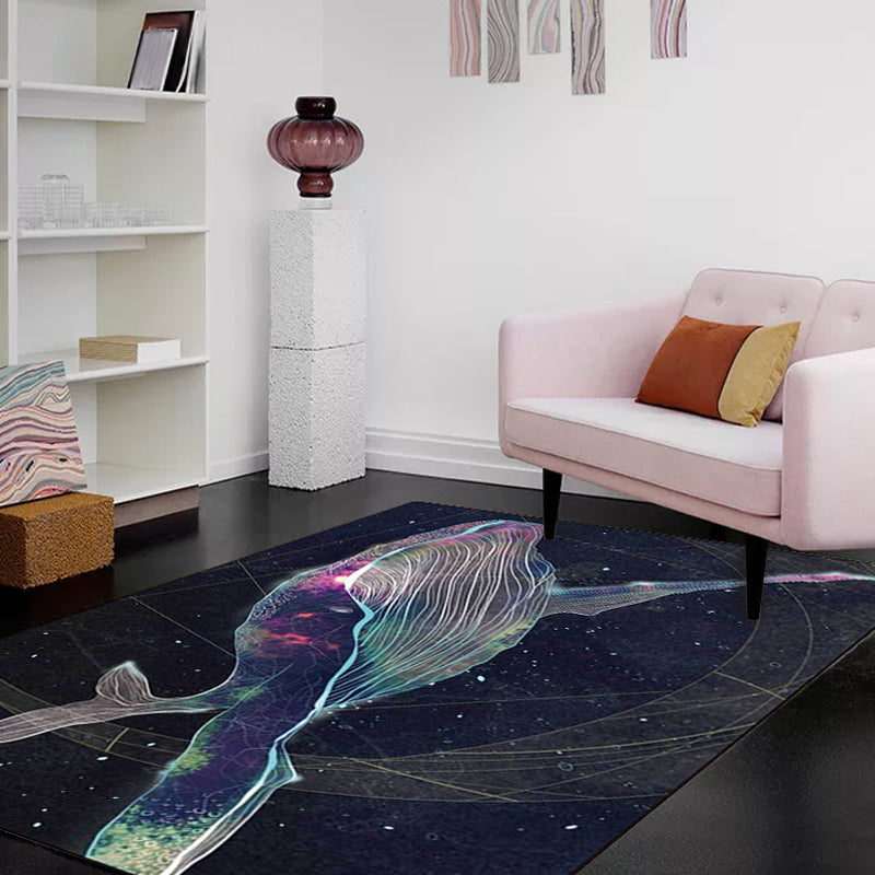 Vivolux | Kinder Schlafzimmer Teppich in Schwarz Äußeren Raum Stern Wal Druck Teppich Polyester Rutschfeste Rückseite Waschbarer Teppich