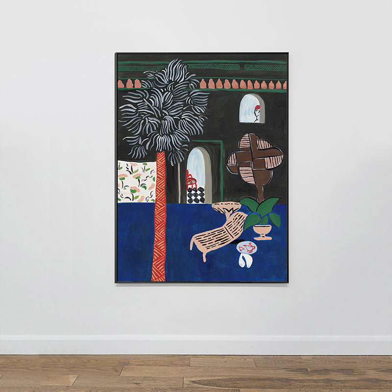 Vivolux | Kinder Kunst Patio Aussicht Gemälde Blau Strukturierte Leinwand Wanddekoration für das Wohnzimmer