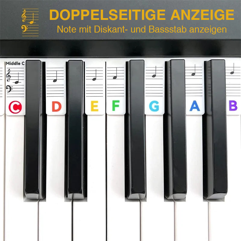 🎹Wenn Sie beginnen, die Tasten zu kennen und sich mit der Oktavregel vertraut zu machen, können Sie die Notenstreifen von der Tastatur entfernen. Wenn Sie das Gefühl haben, dass Sie nicht gut genug sind, können Sie es natürlich jederzeit zurücksetzen.