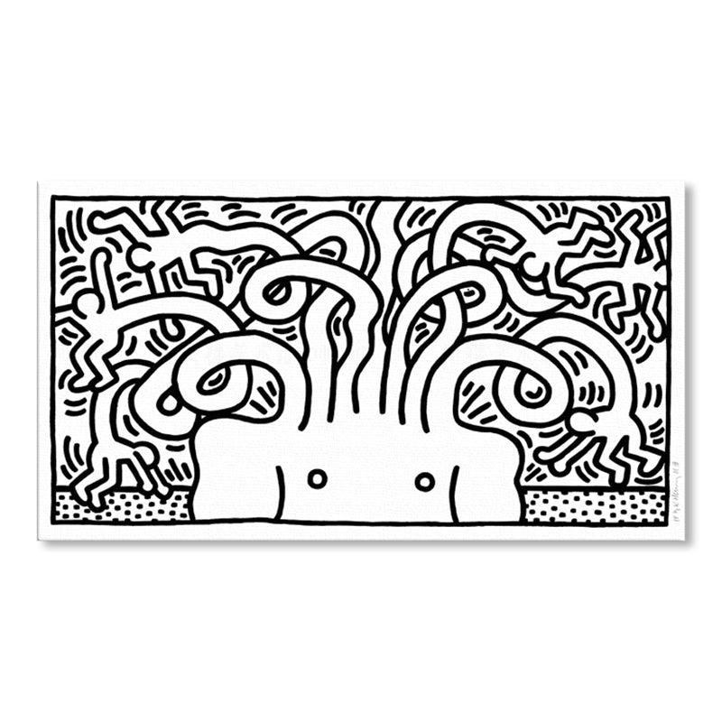 Vivolux | Kohlezeichnungen Abstrakte Figur Leinwanddruck Weiße Pop-Art Wanddekoration für das Wohnzimmer