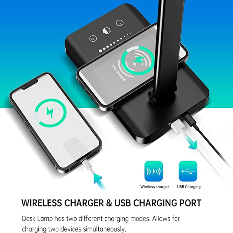Vivolux | LED-Schreibtischlampe mit USB-Ladeanschluss, dimmbare augenfreundliche Leselampe für zu Hause, mit 5 Helligkeitsstufen & 3 Lichtmodi, Touch-Steuerung, Auto-Timer (Schwarz)