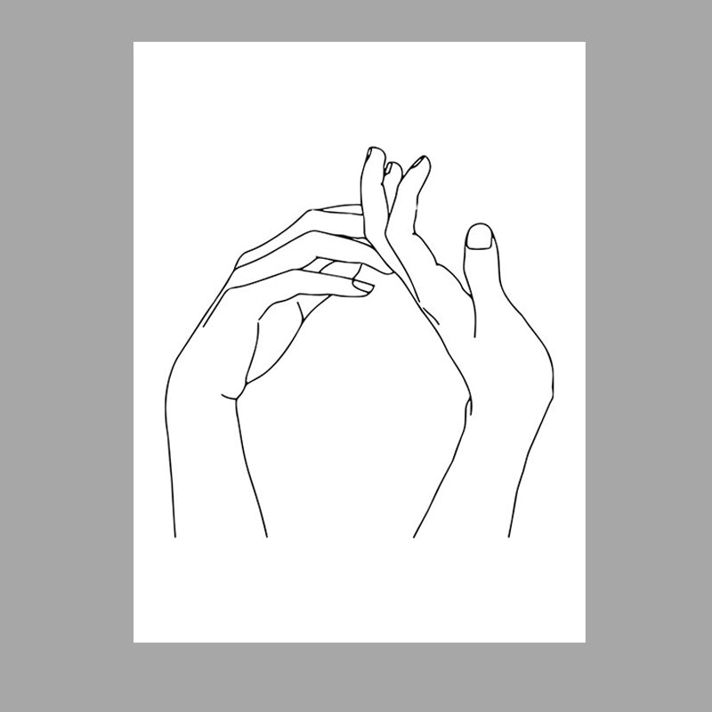 Vivolux | Leinwand Weißes Gemälde Nordische Kohlezeichnungen Hand in Hand Wanddekoration, Mehrere Größen