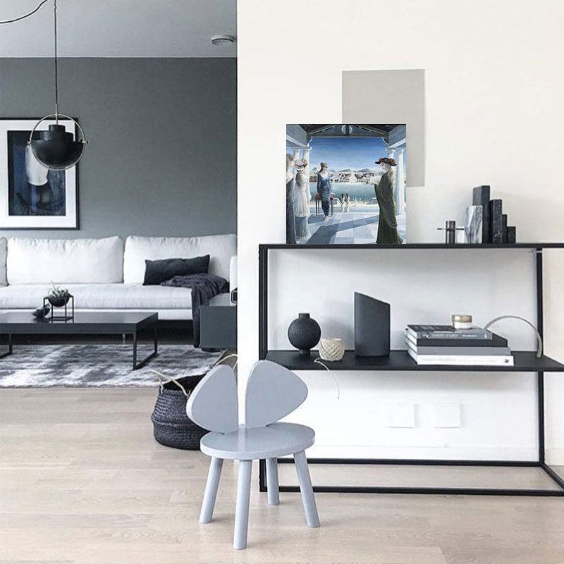 Vivolux | Ölgemälde nostalgischer Stil Leinwand Frauenfiguren in Blau, Mehrere Größen verfügbar