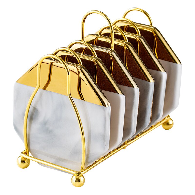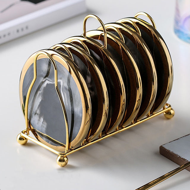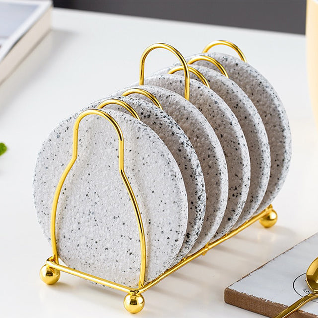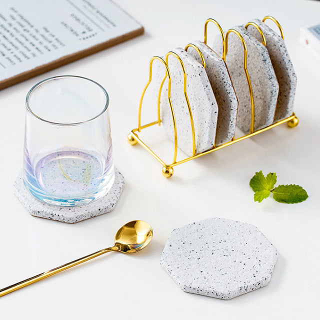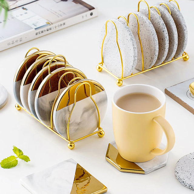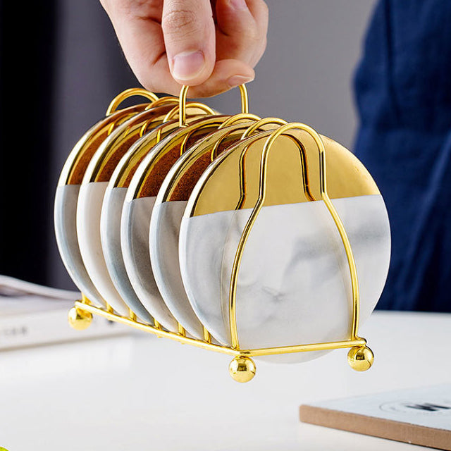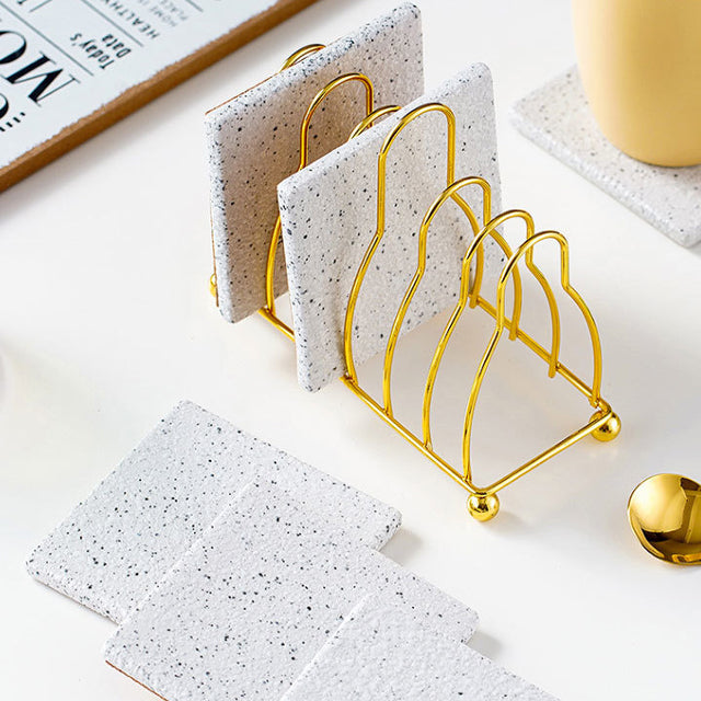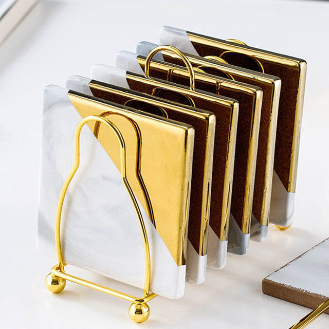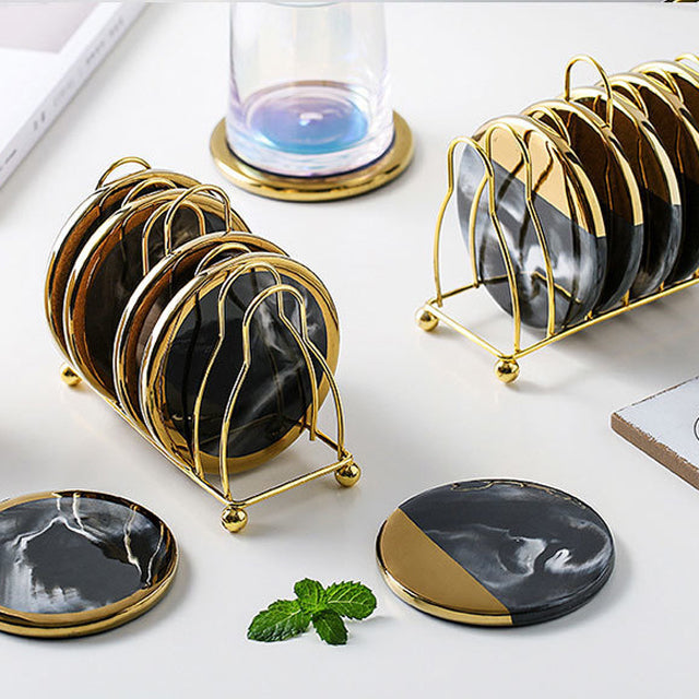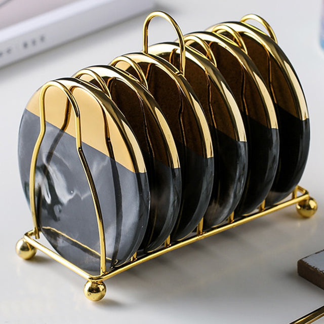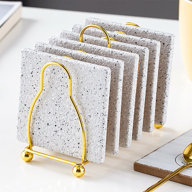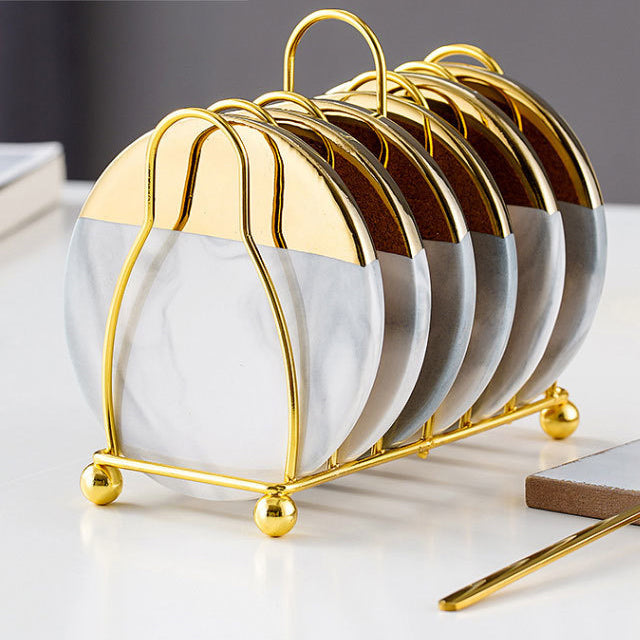 Vivolux | Marmoriertes Keramik-Untersetzer-Set mit Ständer