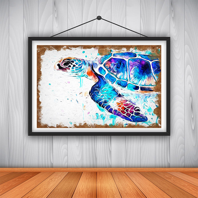 Vivolux | Seehund Gemälde Kunstdruck Texturiert Modernistisches Haus Innen Wanddekoration in Blau