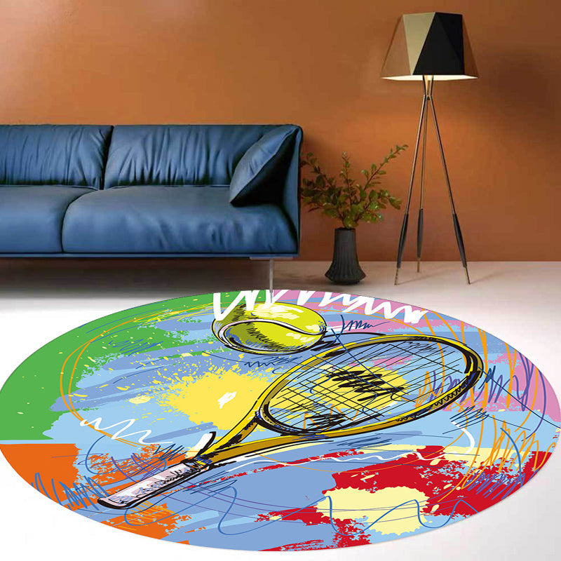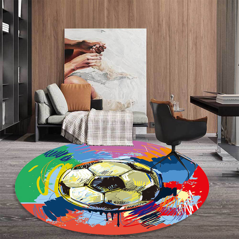 Vivolux | Multicolor Kinderteppich Polyester Sportmuster Teppich Haustierfreundlich Waschbar Rutschfeste Rückseite Teppich für Dekoration
