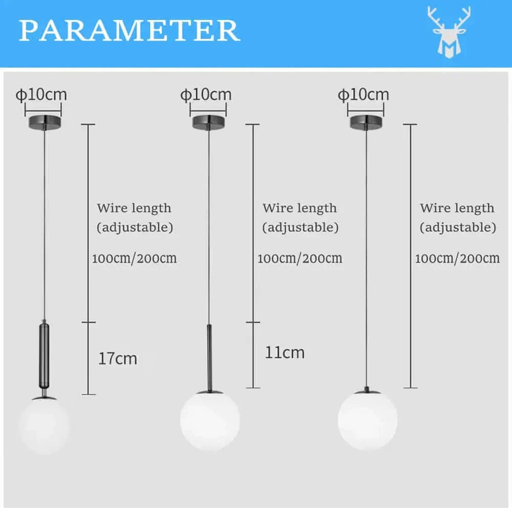 Die Mid-Century Modern Glass Ball Pendelleuchten werden mit einem 100 cm langen Kabel geliefert, was eine problemlose Installation und Anpassung an die gewünschte Höhe ermöglicht. Sie sind mit LED-Birnen kompatibel (Birnen nicht im Lieferumfang enthalten) und bieten eine energiesparende sowie langlebige Beleuchtungslösung.