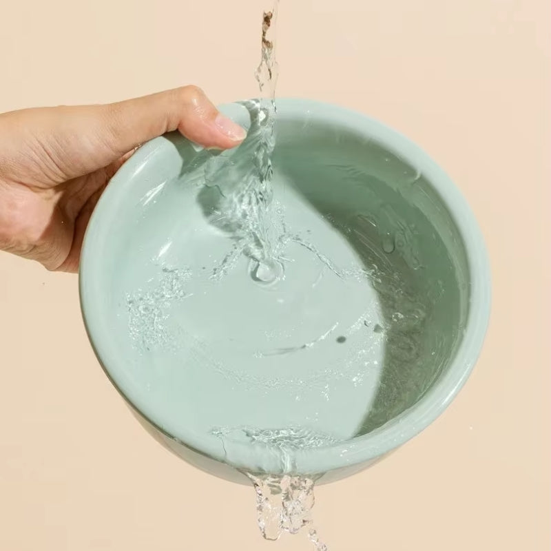Erhältlich in zwei Größen, klein (300 ml Volumen) und groß (600 ml Volumen), sowie in drei hübschen Pastellfarben: Beige Bliss, Salbeigrün und Dunkelgrün. Sie können das Set mit Schüssel und Ständer erwerben oder alternativ die Schüssel einzeln kaufen.