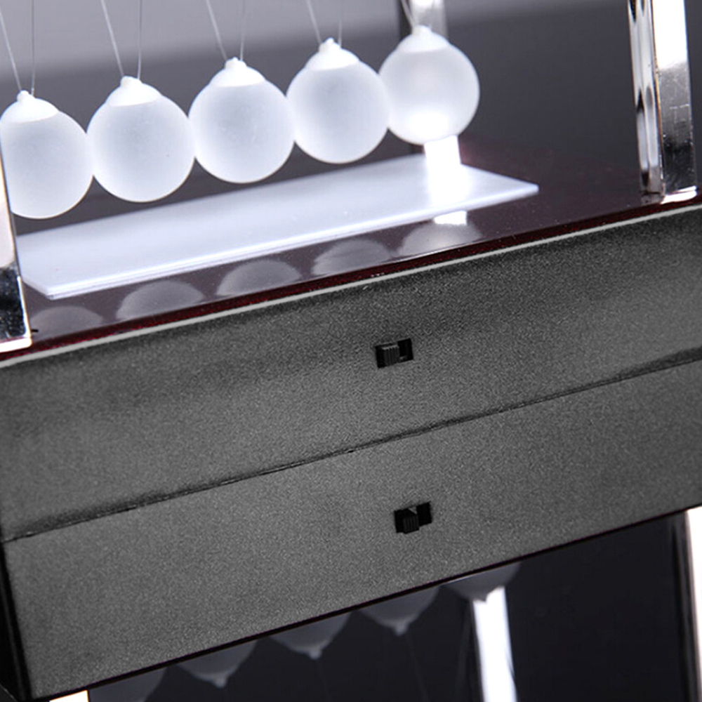 Hier stellen wir das Newton Pendel vor, das mit einer LED-Beleuchtung und einem ansprechenden Design ausgestattet ist. Die Basis hat eine leuchtende Fläche, die eine Vielzahl von Farben auf die Glasperlen projiziert und somit ein fesselndes Schauspiel für alle Betrachter schafft! Es demonstriert die Konzepte der Impuls- und Energieerhaltung sowie die Auswirkungen von Reibung und Dämpfung.