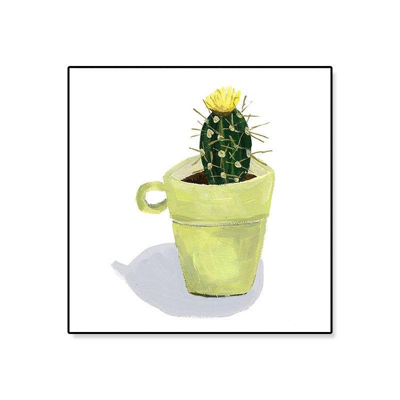 Vivolux | Nordic Illustration Bonsai Kaktus Leinwand Gelb Texturiertes Wandkunst Druck für Kinderzimmer