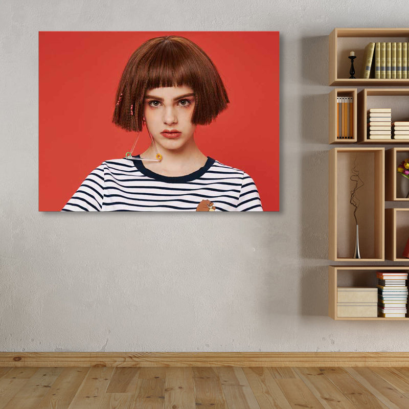 Vivolux | Pastellfarbige Foto Mädchen Leinwanddruck Mode Glam Texturiertes Wanddekor für Gästezimmer